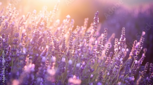 Naklejka premium A sunlit field of lavender in full bloom, with a soft breeze carrying the scent through the air