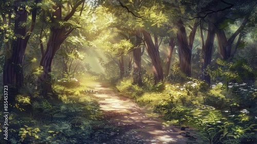 Obraz premium A sunlit forest pathway