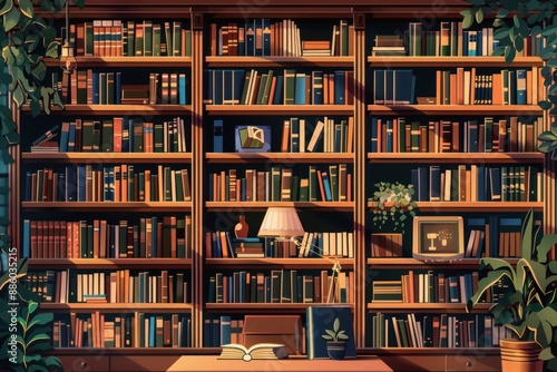 Fototapeta premium A Sunlit Library with Bookshelves Full of Literature