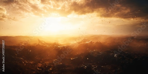 Fototapeta premium A sunlit sky with a large, dark cloud in the background