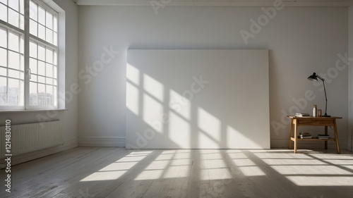 Fototapeta premium A_sunlit_white_studio_room_with_shadows