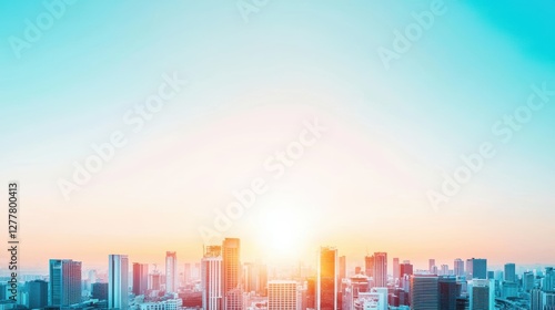 Fototapeta premium A sunrise over a city, with the rising sun casting a warm glow on the silhouetted buildings, signifying a new day and fresh start.