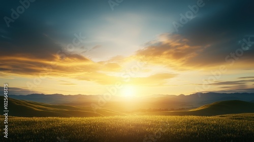 © Petchladda, Obraz premium A sunrise over a peaceful landscape, symbolizing new beginnings and positive energy.