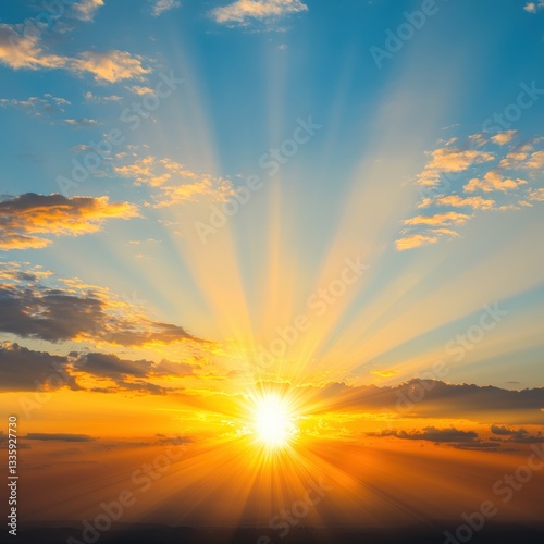 © Petchladda, Fototapeta premium A sunrise with light bulb-shaped rays, representing the dawning of new ideas