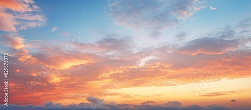 © Ilgun, Obraz premium A sunset at the airport features cirrocumulus clouds with a striking appearance resembling fire providing an ideal backdrop for a copy space image