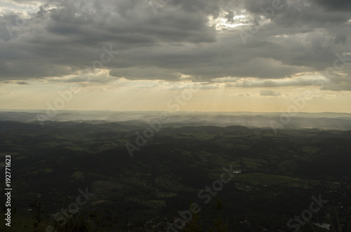 © Roberto, Fototapeta premium A sunset in clouds by the mountain
