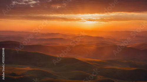© LooPanda-Pictures, Naklejka premium A sunset orange background with a soft glow, giving a warm and inviting feel, perfect for cozy themes