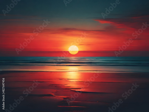 © fiitsoluion, Obraz premium A sunset over a beach with abstract background