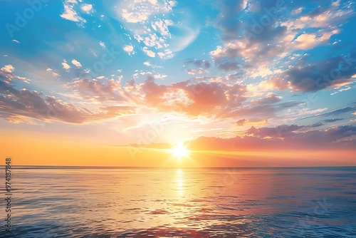 Fototapeta premium A sunset over a body of water glow over the tranquil sea