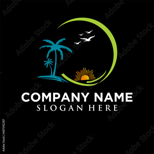 © Ajik, Naklejka premium a sunset-themed beach logo