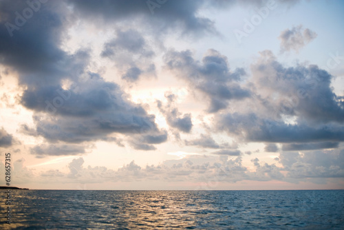Naklejka premium a sunset through clouds over the Pacific Ocean