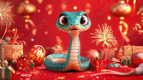 Fototapeta premium A super cute and friendly snake with big, expressive eyes, chinese new year