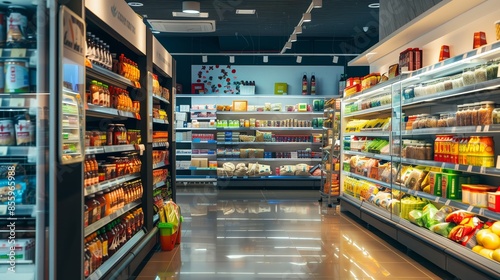 Fototapeta premium A supermarket with lots of goods on the shelves