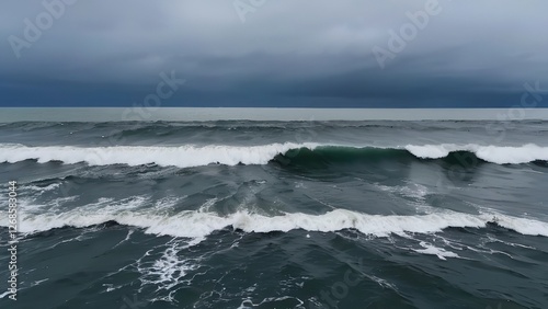 Fototapeta premium a surfboard riding the crest of a wave in the ocean