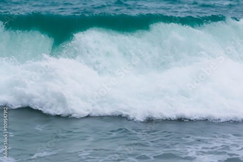 © ibragimova, Fototapeta premium A surfer riding a wave in the ocean. Waves in the sea in nature. Sea waves nature water blue foam. Sea foam in the blue lifestyle water.