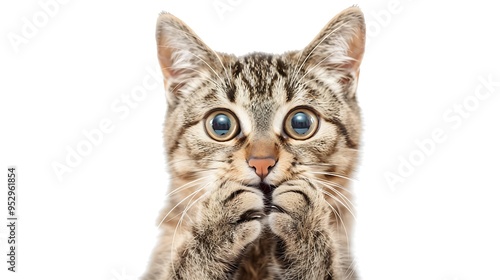 © Badass Prodigy, Obraz premium A surprised cat with wide eyes, showcasing an expressive and cute demeanor.