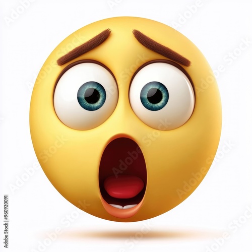 Fototapeta premium A surprised emoji expressing shock in a playful, vibrant design with exaggerated features against a minimalist background