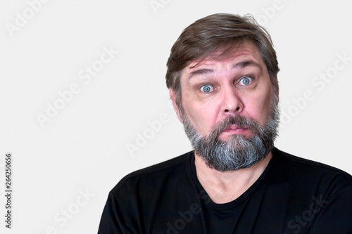 Obraz premium A surprised middle aged man with a beard.