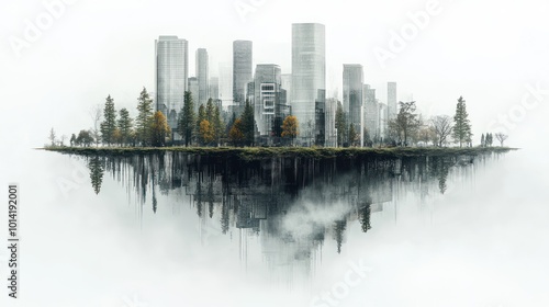 © julio, Obraz premium A surreal cityscape floating above misty terrain.