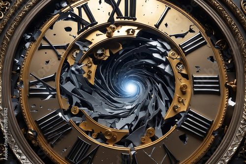 Obraz premium A Surreal Clock Face Imploding into a Spiraling Vortex, Warping Time and...