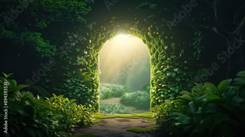 Fototapeta premium A surreal composition depicting a keyhole with light streaming through, symbolizing the journey of transformation and change.