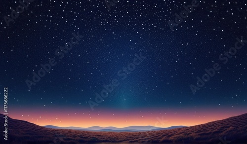 Fototapeta premium A surreal landscape with a field of glowing a crescent moon, and a starry sky