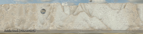 © Angelina, Obraz premium A surreal mountain landscape with a smooth, textured surface, reflecting in calm water under a soft sky. Perfect for backgrounds, nature themes, and abstract designs.