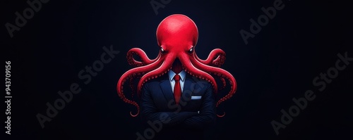 © Sorat, Naklejka premium A surreal octopus dressed in a suit, blending elegance with marine elements in a dark, moody atmosphere.