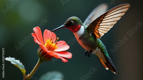 Fototapeta premium A surreal scene featuring a colorful hummingbird and a flower composed of...