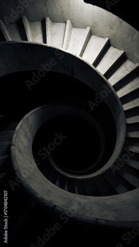 Fototapeta premium A Surreal Spiral Staircase Descending Endlessly into Darkness