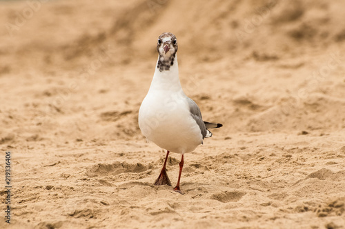 Fototapeta premium A suspicious seagull on a beach