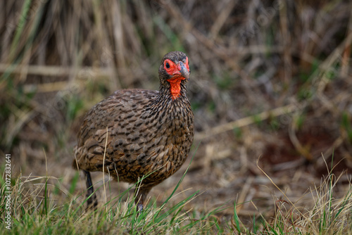 Fototapeta premium A Swainsons francolin running through dry grass, Rietvlei Nature Reserve, South Africa