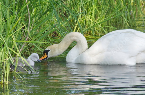 © Foton, Obraz premium A swan family with chicks.