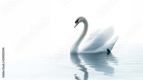 Fototapeta premium A swan is swimming in a body of water. The water is calm and the swan is the only object in the scene. Concept of tranquility and peacefulness