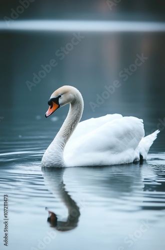 Obraz premium A swan is swimming in a lake