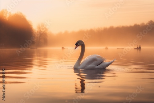 © Alexandr, Fototapeta premium A swan swimming in a lake at sunset