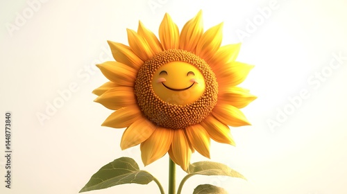 Fototapeta premium A sweet 3D sunflower with an oversized face and a warm friendly glow isolated...