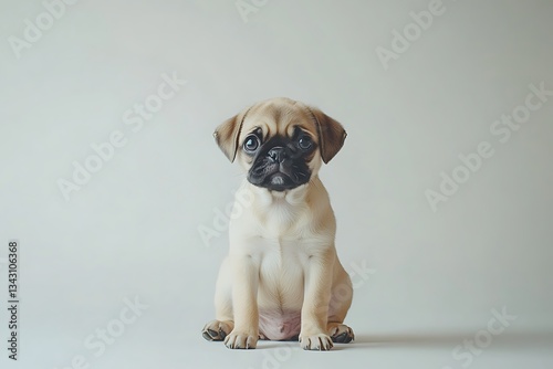 Obraz premium A sweet pug puppy sits patiently, awaiting affection against a soft, neutral...
