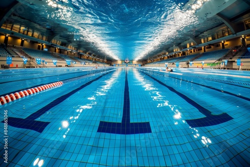 Fototapeta premium A swimming pool with a blue tiled bottom and a blue top