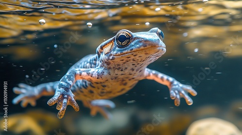 © huynh, Fototapeta premium A swimming salamander represents the importance of biodiversity and the challenges posed by climate change.