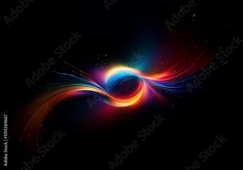 © YiuCheung, Fototapeta premium A swirling abstract pattern of light against a black background.