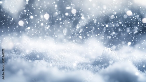 Fototapeta premium A swirling blizzard with heavy snowflakes, creating a white and gray scene. The snow falls like dust and ice particles, glimmering in the December air. It's a beautiful but chaotic winter storm.