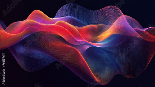 Fototapeta premium A swirling, 3D shape made of lines, like a colorful, abstract wave.