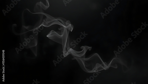 © Prateek, Fototapeta premium A swirling fog overlay with curling mist and subtle diffused light, creating an atmospheric effect on a solid black background.