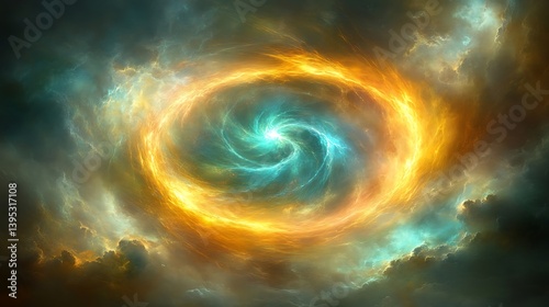 © Ibnu, Obraz premium A swirling vortex of celestial fire and ice in a cosmic storm.