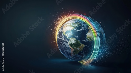 © Petchladda, Obraz premium A symbolic rainbow wrapping around the globe, representing global unity.