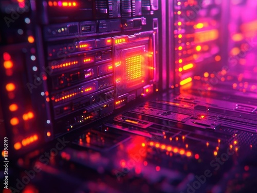 Obraz premium A symbolic scene of a glowing firewall protecting a server, filminspired lighting, and dramatic composition