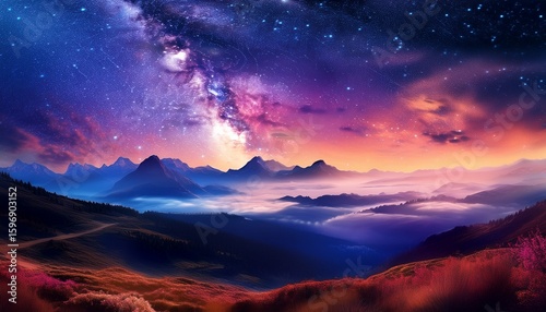 © Jessi, Fototapeta premium a symphony of cosmic hues painting a breathtaking and ethereal nightscape scene