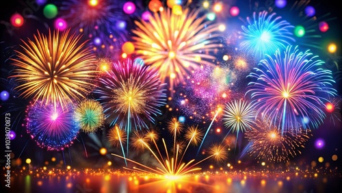 Naklejka premium A Symphony of Exploding Colors, Illuminating the Night Sky with a Dazzling...