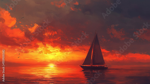 © Amith, Fototapeta premium A Symphony of Orange and Red Over the Sea